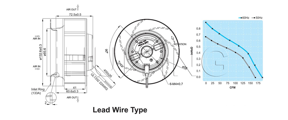 | 190 | 190mm | B | Air Discharge Opposite Rotor Side | Centrifugal Fan | ||||||||||||||||