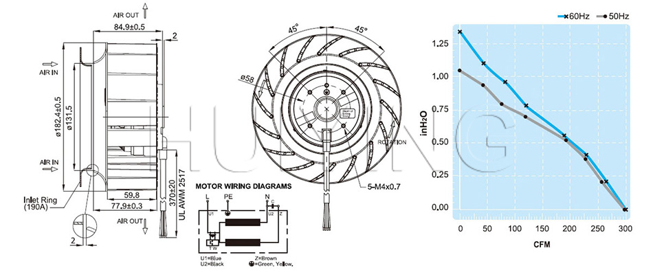| 190 | 190mm | B | Air Discharge Opposite Rotor Side | Centrifugal Fan | ||||||||||||||||