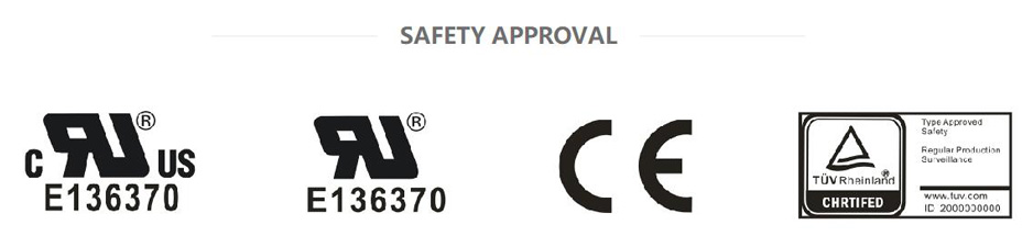 安规认证: CUL, CE, TUV, either UL or ETL.