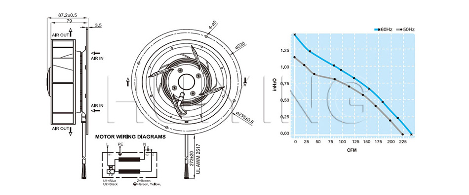 175 175mm N Pressed Steel C Forward Cure, Dual Air Intake 0A 115-230V D Single Phase EC Motor B With Low Guard/No Frame