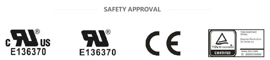安规认证: CUL, CE, TUV, either UL or ETL.